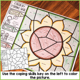 This color by coping skill activity is a great way to review coping skills with your students for a fall activity! Review coping strategies that students can use when difficult situations arise in this hands-on activity! Students use the coping skills key on the left side of the page to color the hidden image on the right. Includes, quick start user's guide, 5 pictures with 13 coping skills, and a situation/coping skills handout.