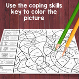 This digitally downloadable color by coping skill activity is a great way to review coping skills with your students around Halloween. Review coping strategies that students can use when difficult situations arise in this hands-on activity! Students use the coping skills key on the left side of the page to color the hidden image on the right. Includes, quick start user's guide, 8 pictures with key, and includes 35 coping skills.