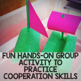 This elementary school counseling classroom guidance lesson gives students a chance to practice important cooperation skills in a group activity. Students work together to create a floating boat for a race by sharing ideas, listening, giving feedback without criticizing, and more! Additional supplies needed: a pool noodle, straws, paper, or other boat-building materials.