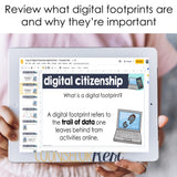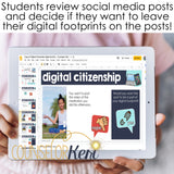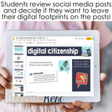 Digital Citizenship & Digital Footprint Digital Activity - In this Google Slides digital activity, students review what digital footprints are and why they are important. Students imagine they are admissions officers for a school and review applications and social media posts of applicants to make a decision! Then students review social media posts and decide which ones they want to leave their digital footprints on and which ones they don't! Students complete these activities via Google Slides TM/Google Classroom TM.
