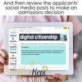 - Google Slides TM activity (introductory slides, interactive admissions activity, interactive social media review activity)