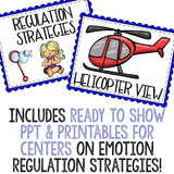 This elementary school counseling classroom guidance lesson introduces students to emotion regulation strategies! Practice all 11 included strategies or pick 5-6 to practice. Choose from ready-to-show PowerPoint presentation, leading the whole group through exercises or print center signs and handouts and let students rotate through centers to practice strategies in smaller groups.