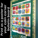 Feelings and Calming Strategies Poster, Cards, Desk Labels, and Bulletin Board for Calm Corner