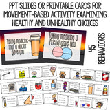 This elementary school counseling classroom guidance lesson gives students the opportunity to examine healthy vs. unhealthy choices. In a movement-based activity, students evaluate 45 choices to determine if they are healthy or unhealthy. Students then independently sort scenarios for additional practice. Discuss how healthy comes in all shapes and sizes and being healthy is all about balance!
