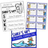 Surf's up! Introduce your students to the role of the school counseling with this fun classroom guidance lesson. This surfing-themed meet the school counselor pack includes the following: