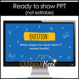 Mental Health: In this middle school classroom guidance lesson, students will learn what mental health is, discuss factors that influence mental health, review ways to support and improve mental health, and create a mental health plan.