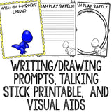 This elementary school counseling classroom guidance lesson introduces early elementary school students to the concept of playing safely! Students meet T-wrecks, a dinosaur student who learns how to assess situations, play safely, and apologize when necessary.