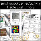 Social Media Safety: Help students understand what is and is not safe to post online! Review personal information that should be kept private and how to craft a safe social media post. Students will rotate through 3 centers to differentiate between safe and unsafe posts, to create their own safe posts for given situations, and decide which comments and messages are safe to respond to. This activity is perfect for classroom guidance lessons or small group counseling sessions on social media safety.