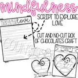 In this Valentine's Day mindfulness activity, students will participate in a mindfulness exercise to explore the things that they love! Use the mindfulness script included to lead students through the exercise and reflect on their experience of love. Students then create a box of chocolates craft and identify things that they love most. This includes a mindfulness script, cut and no-cut craft printables, and a digital version for Google Slides TM and Google Classroom TM. This activity is perfect for classroom guidance lessons or small group counseling, and the craft makes a great bulletin board!