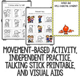 Includes lesson plan (objectives, outline, materials list, ASCA standards alignment), story in 3 forms (printable PDF, PowerPoint, or mp4), visual aids, talking stick printable, activity printables, paddle printables, situation list, student handout with answer key, and objectives assessment checklist.