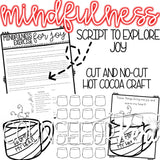 In this winter mindfulness activity, students will participate in a mindfulness exercise to explore joy and warmth through their senses! Use the mindfulness script included to lead students through the exercise and reflect on their experience of joy or warmth in their hearts. Students then create a hot cocoa craft and identify things that bring them joy. This includes a mindfulness script and cut and no-cut craft printables. This activity is perfect for classroom guidance lessons or small group counseling.