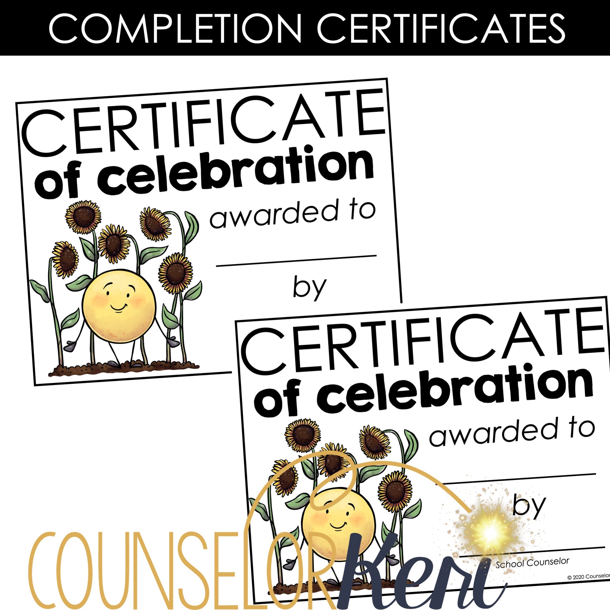 • Group completion certificates (counselor, social worker, psychologist, and blank options)