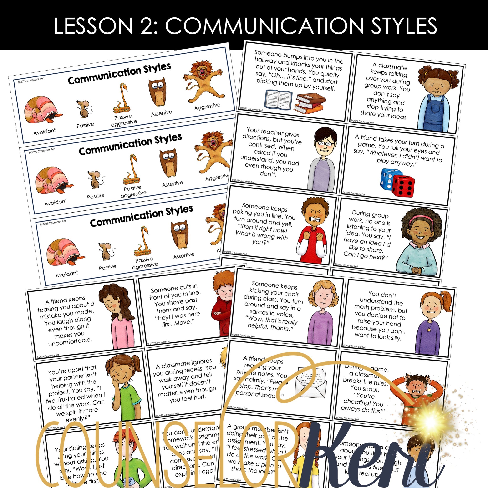 Lessons cover assertive communication styles, I-statements, self-advocacy with peers and adults, boundary-setting, conflict communication, group-work assertiveness, calming strategies, and personal advocacy planning. This curriculum is ideal for students in grades 3–6 who struggle with passive or avoidant communication, difficulty speaking up, people-pleasing, fear of getting in trouble, or discomfort advocating for their needs.