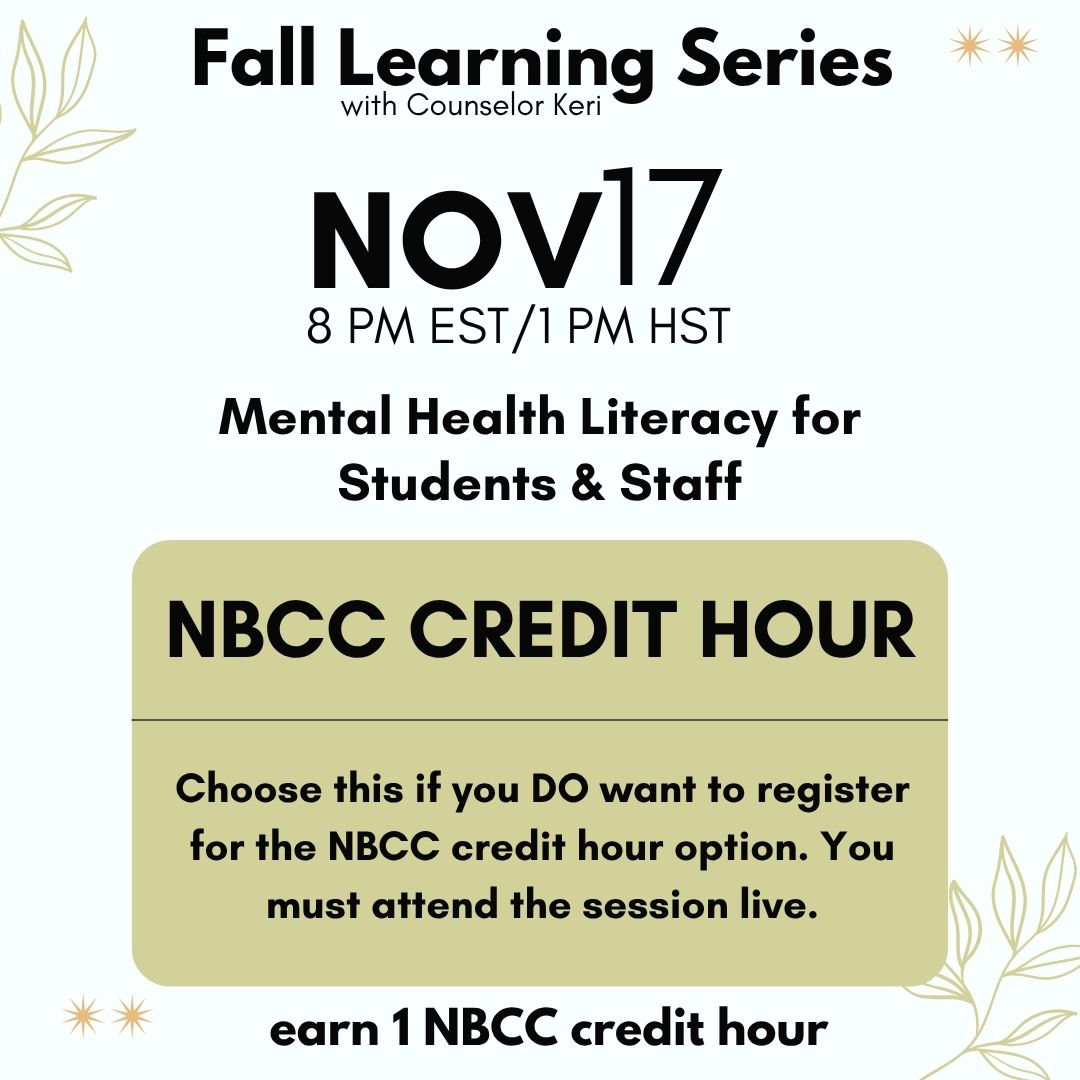 Fall Learning Series with Counselor Keri, Keri Powers, M.A. EdHD., M.Ed., NCC