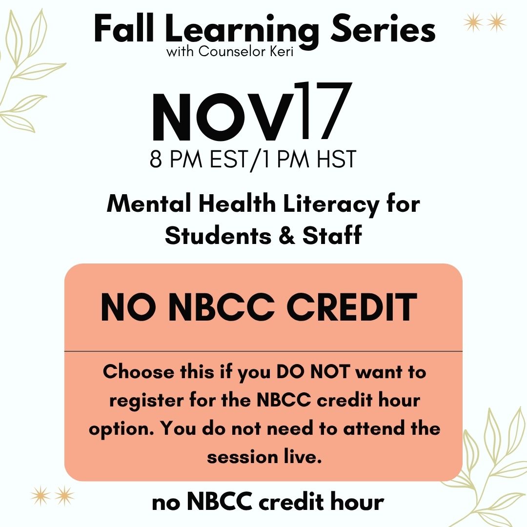 Fall Learning Series 2025: Mental Health Literacy for Students & Staff Webinar PD