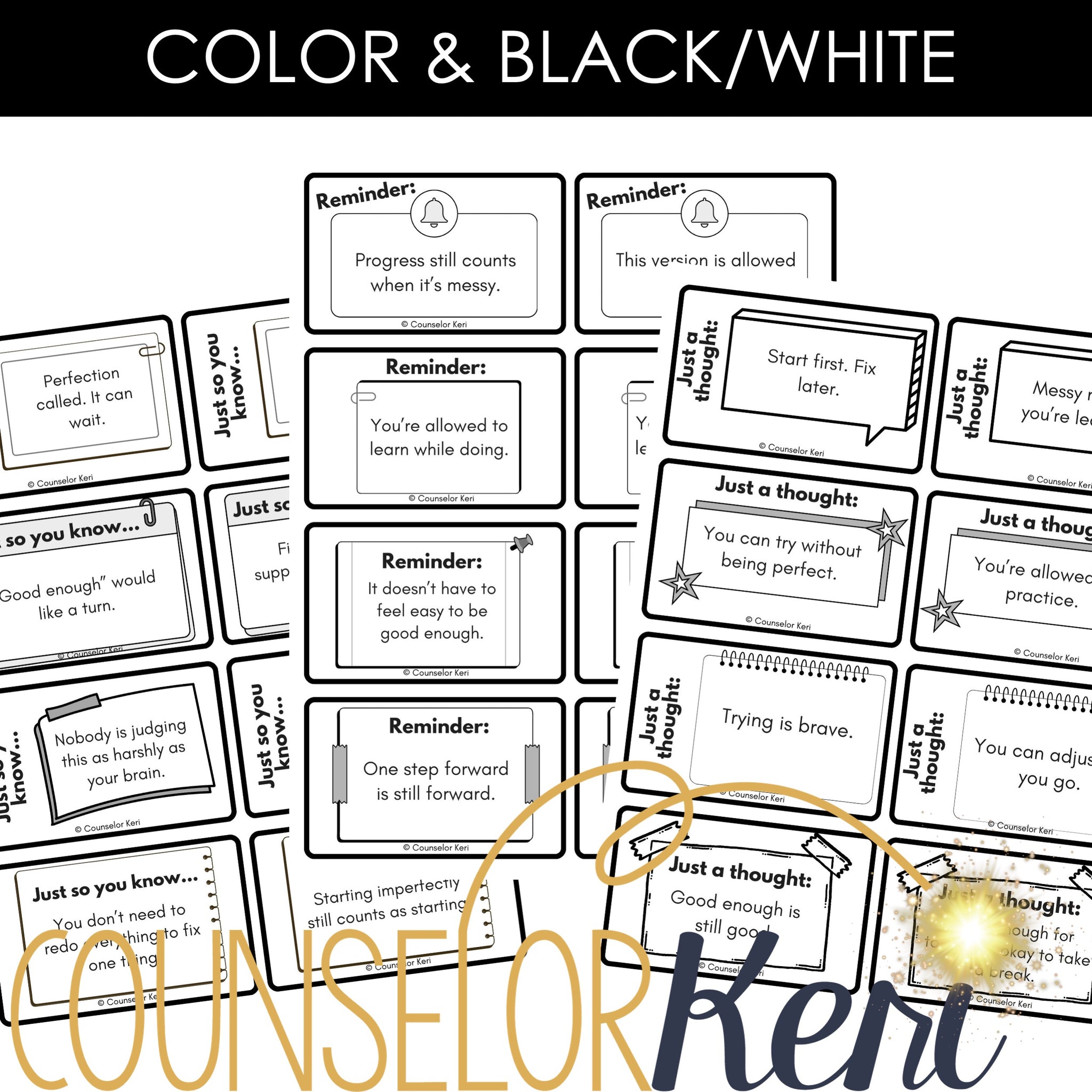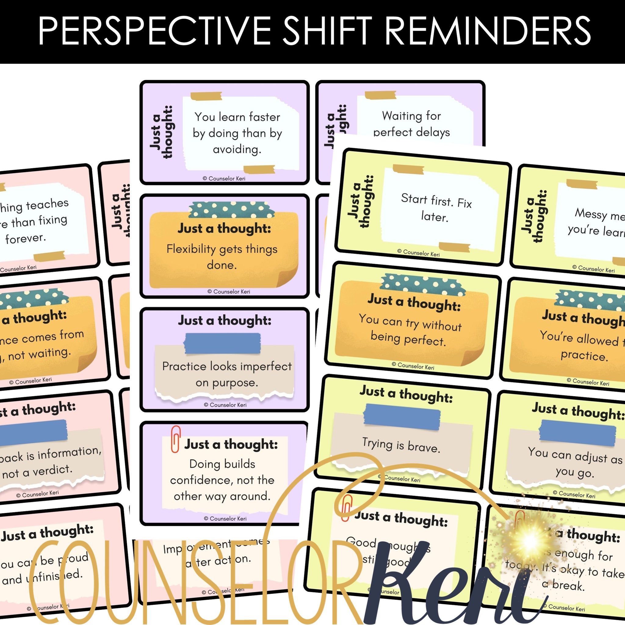 Flexible Thinking Reminder Cards for Perfectionistic Thinkers School Counseling